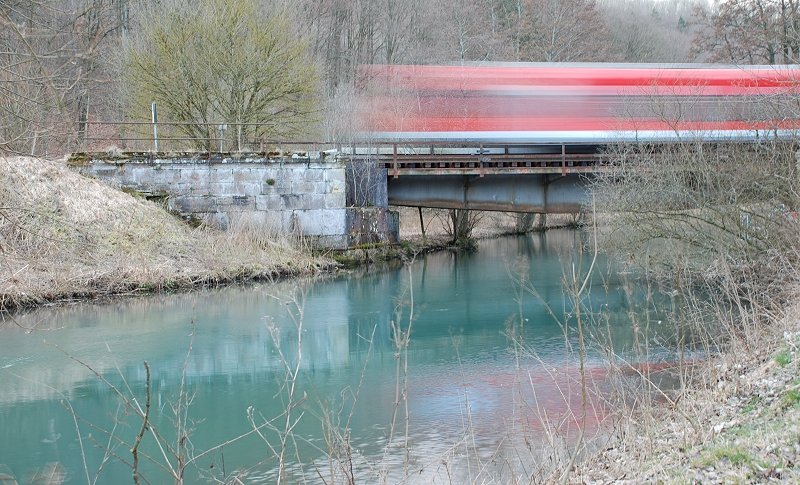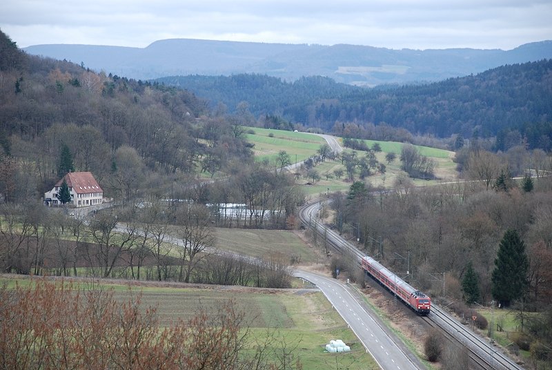 Zu diesem Streckenabschnitt habe ich einen besonderen Bezug, kommen doch meine " Vorfahren" väterlicherseits aus Urspring (das Bild wurde zwischen Lonsee und Urspring aufgenommen). Als Kind und auch heute noch kommen wir immer wieder dorthin. Sicherlich wurde dadurch mein Interesse an der Eisenbahn geweckt. Als Kind haben mich dort sehr die grünen Krokodil-Güterzugloks fasziniert, auch kann ich mich an die TEE-Dieseltriebzüge auf dieser Strecke erinnern.