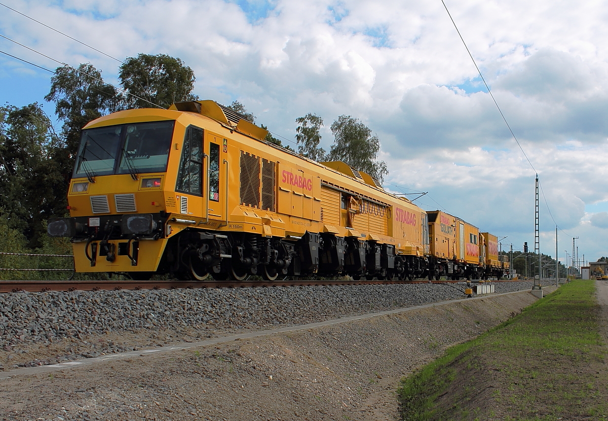Der Schienenfräszug "Goliath" SF 03W - FFS der Fa. STRABAG Rail GmbH am 17.09.2013 in Nassenheide. Schweres Nebenfahrzeug Nr.: 99 80 9427 004-3 Hersteller: Linsinger Baujahr : 2011 Eigengewicht: 112,0 t Nutzlast: 5,8 t V max : 100 km/h (zum Bild)