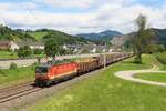 Die 1144 092 fährt am 4.6.2024 mit einem gemischten Güterzug von Frohnleiten kommend hier kurz vor Stübing in Richtung Graz Vbf. (voir l'image)