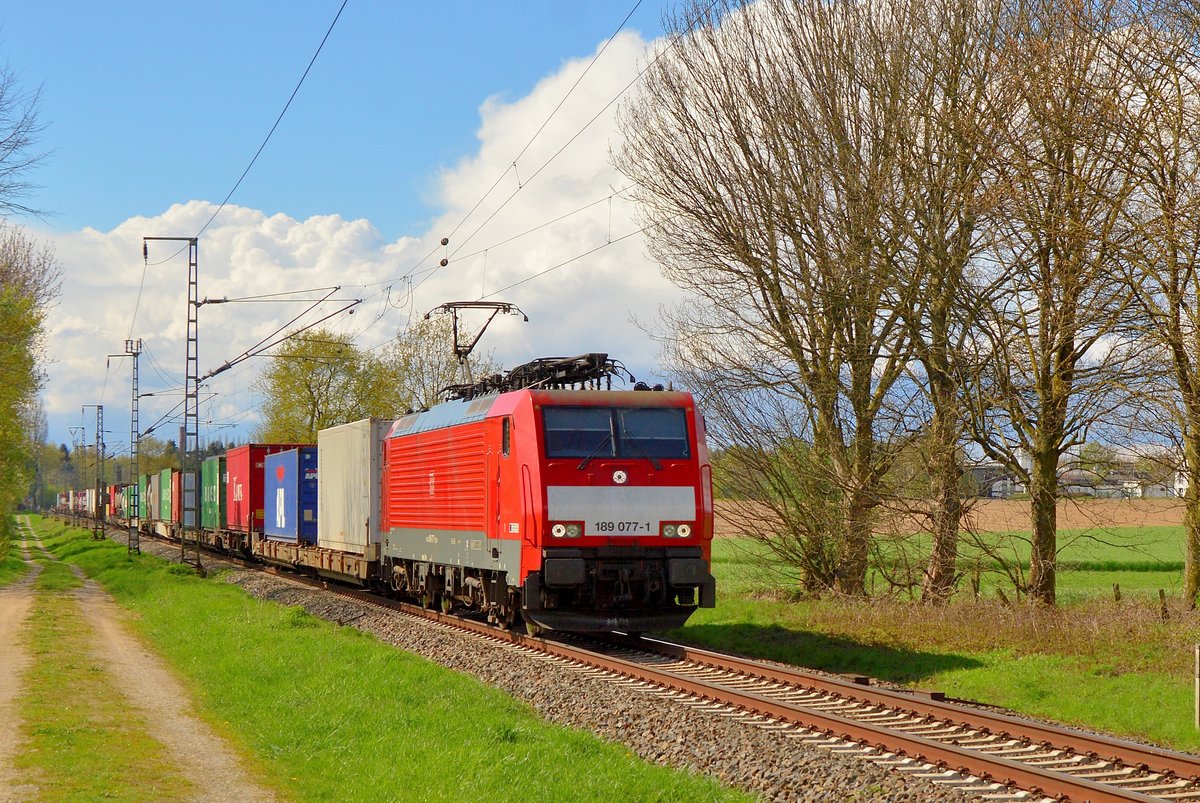 ein schönes Bild von der 189 077-1 DB mit einem Containerzug gefällt mir.