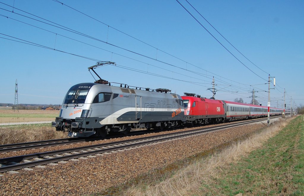 1216 025 "World Record" mit IC692 bei Tullnerbach-Pressbaum am 27.1.2010 (naar de afbeelding)