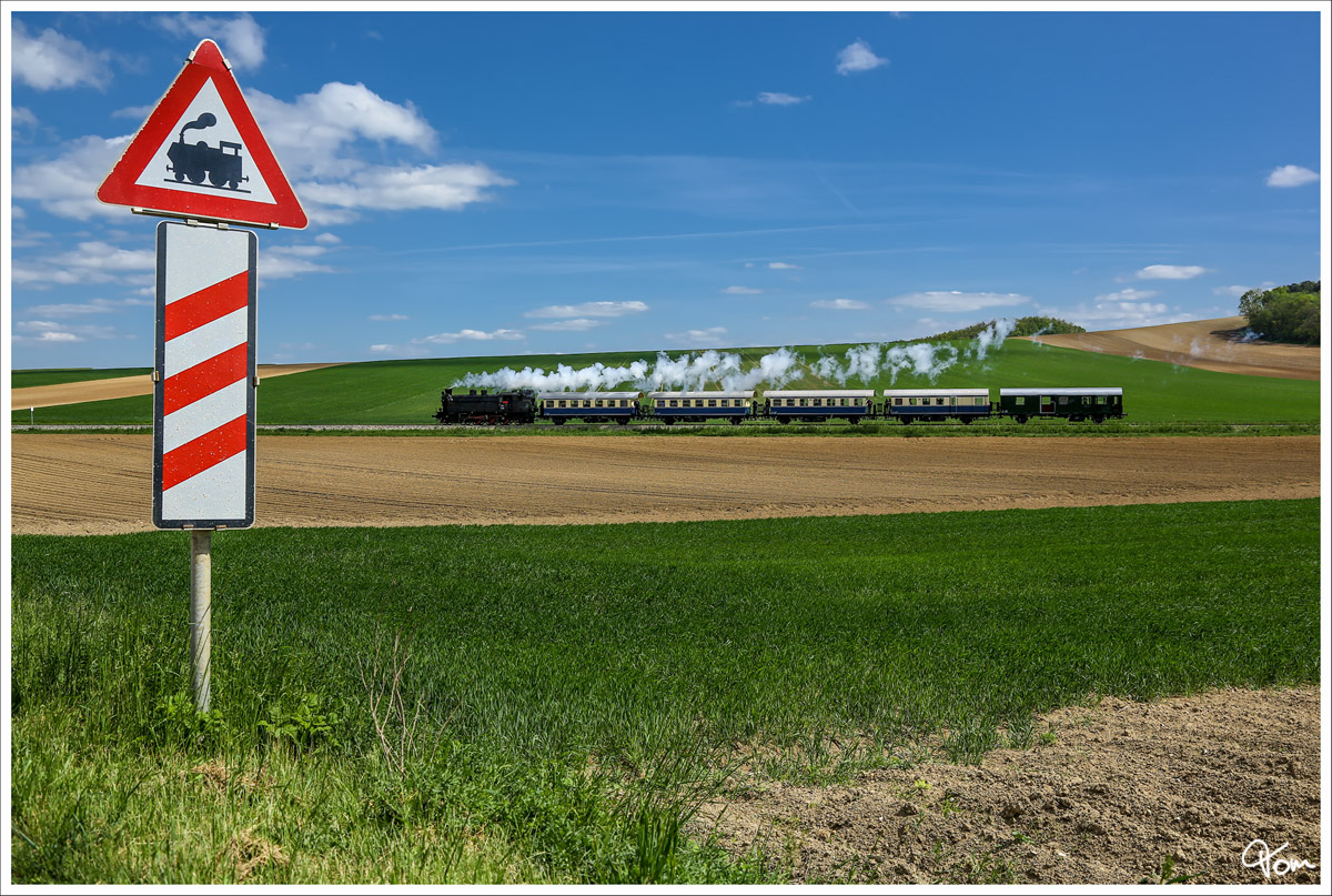 Hier gefällt mir die gesamte Szene, bei der die Lok zwar unauffällig am Rand ist, durch die Freistellung vom Rest des Bildes eine besondere Spannung schafft.