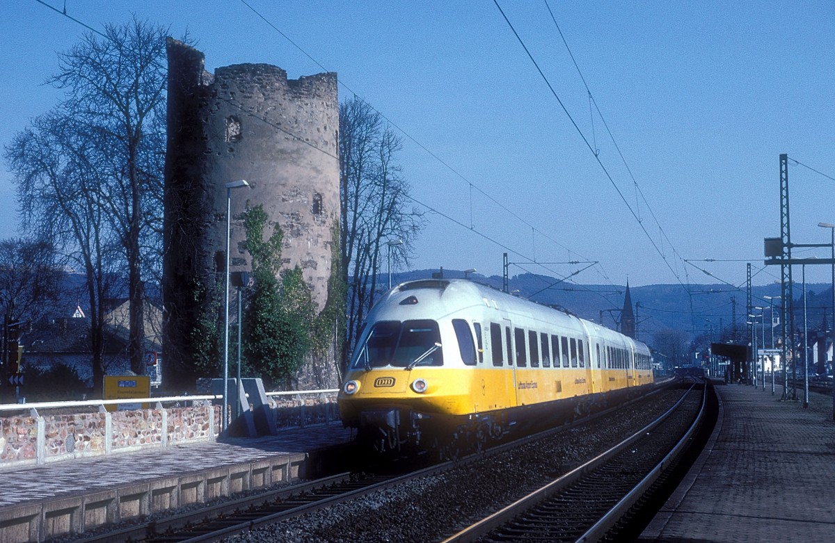 Ein tolles Bild von dem 612er eingerahmt von der Lahnbrücke und darüber thront die Burg Schadeck.