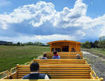 Die grosse Attraktion des 'Train Jaune' ist zweifellos der offene Wagen, der in der 'alten' Komposition eingereiht ist: frische Bergluft ist garantiert! Saillagouse, 24.5.2023 (zum Bild)