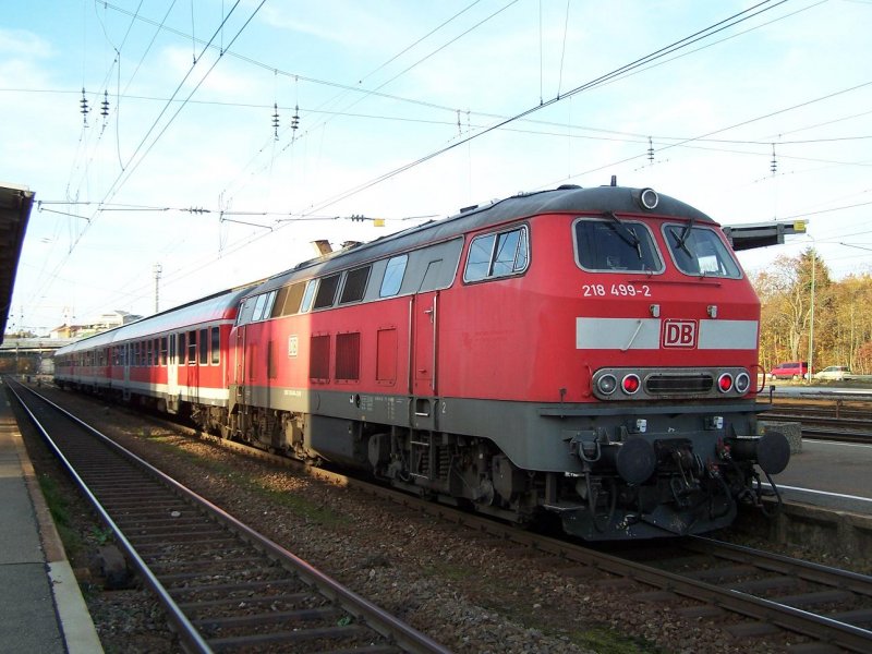 Heute war der RE 22308 von der BR 218 499 gezogen. Villingen 27/10/09. (voir l'image)