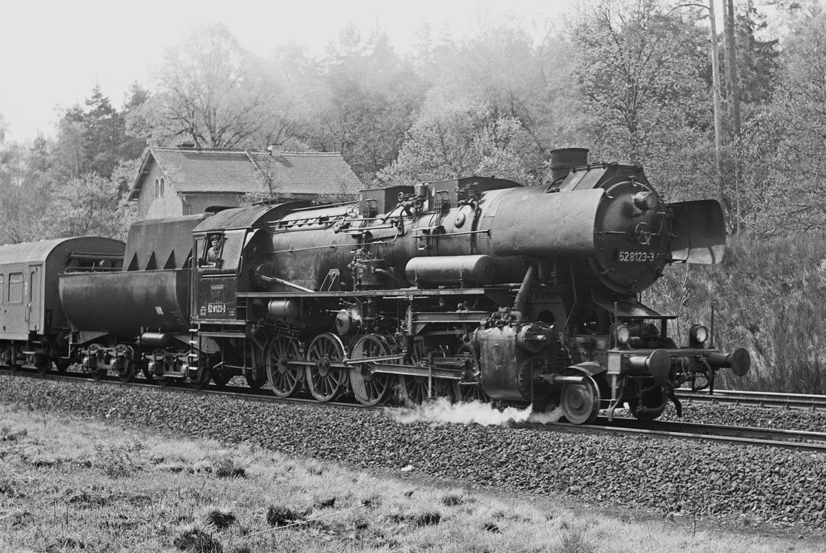 08.05.1982, Dresden-Klotzsche, Lok DR 52 8123 befördert planmäßig den Personenzug von Königsbrück nach Dresden Hbf. (al imagen)
