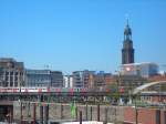 Blick von der Speicherstadt zur S-Bahn und Michel (voir l'image)