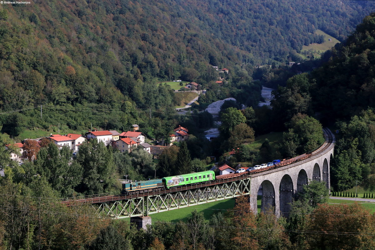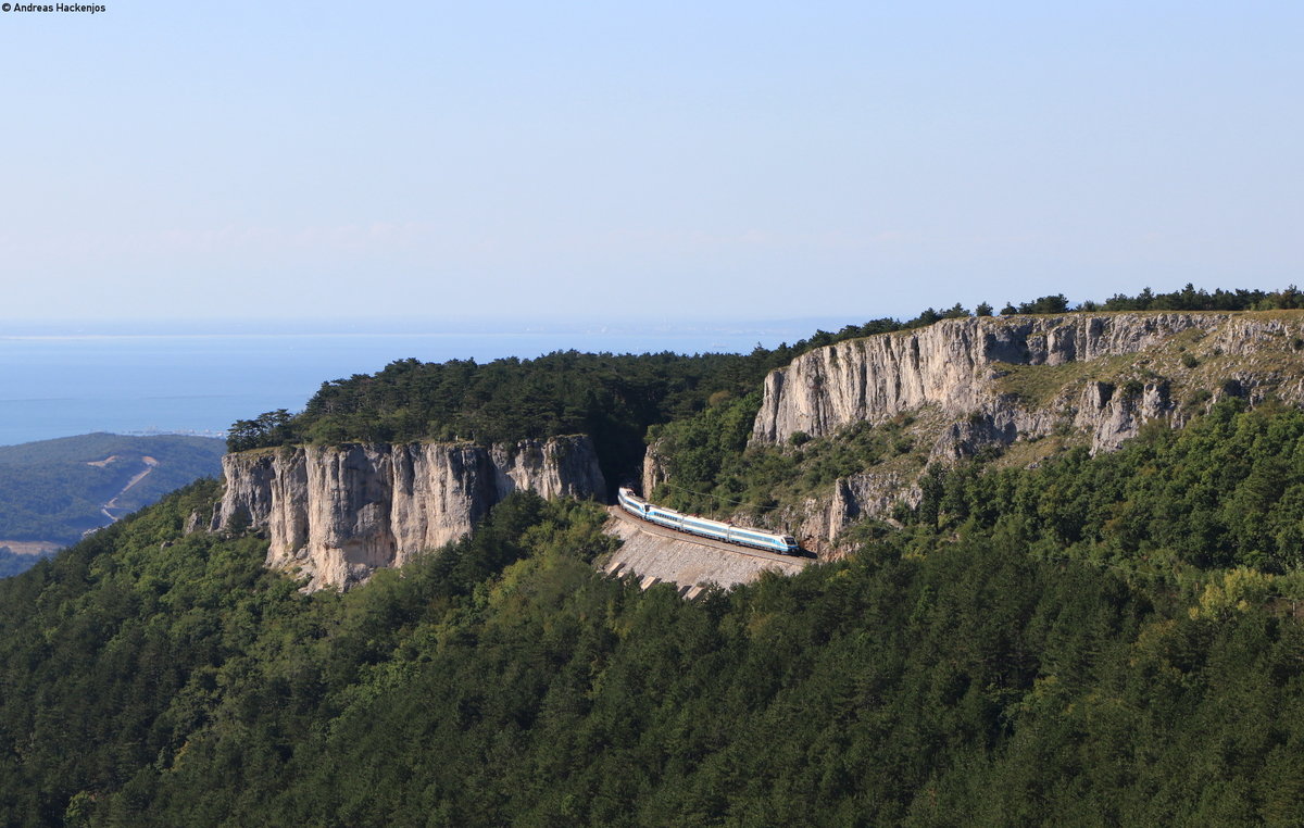 Wohl eines der schönsten Bilder dieses Zuges; besonders gefällt neben dem Karstgebierge auch der Blick auf Mittelmeer und die Küste im Hintergrund. Im Bild nicht zu sehen, aber aber auch erwähnenswert der Kontrast zwischen der gebierigen Gegend oberhalb von Koper und der flachen Gegend um Hodos.