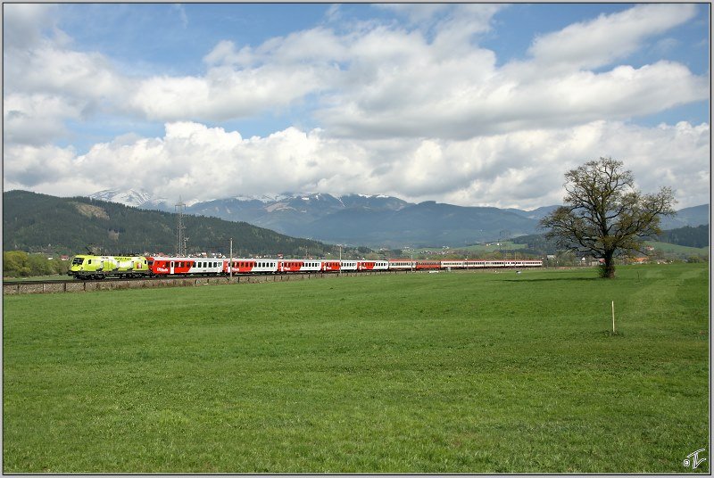 ein wunderschönes Bild! Ein offensichtlich fotogener Zug, eingebettet in herrliche Landschaft - Gefällt!