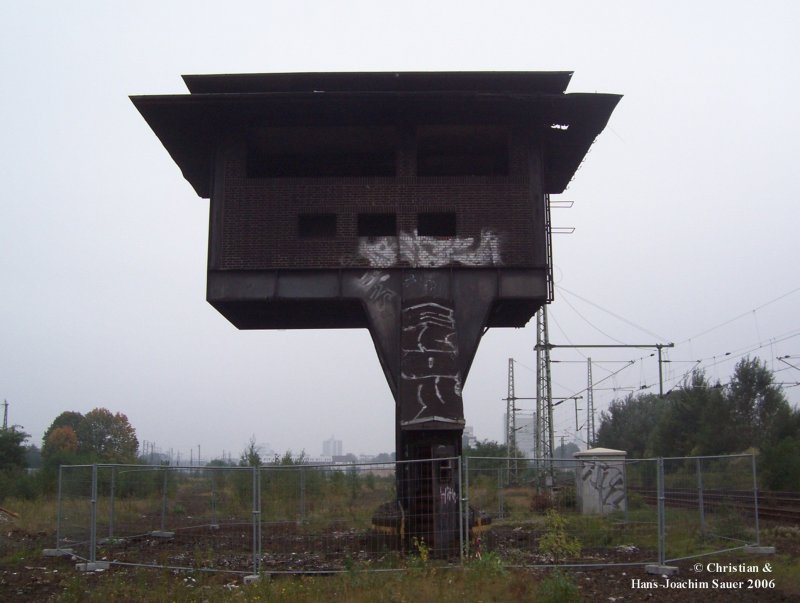 Das werden wohl mit die letzten Bilder des Stellwerkes „Bgm“ im Güterbahnhof Bremen werden. Das Gebäude ist bereits entkernt. Bei dem Bauwerk handelt es sich um ein großes elektromechanisches Pilz-Stellwerk aus dem Jahr 1935. Aufnahme vom 10/2006. (zum Bild)