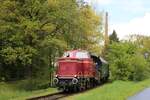 Am 26.04.2024 kam die historische V 65001 der Osnabrücker Dampflok Freunde mit einem kurzen Sonderzug zur Firma Schoeller in Lüstringen. Hier schiebt sie gerade ihren Wagenpark in das Firmengelände an der Straße Burg Gretesch in Lüstringen. (zum Bild)