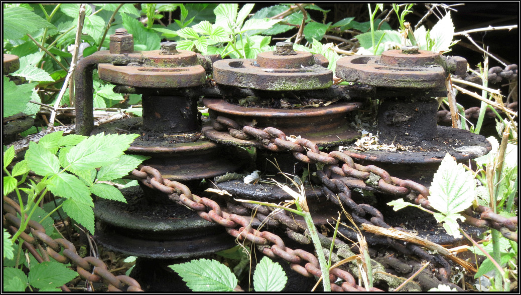 Alte Drahtrollen die einst für die Signalstellung zuständig waren fristen nun einen Dornröschenschlaf an der Vennbahn in Raeren / Belgien. Als Motiv bildlich festgehalten am 23.Juni 2015. (zum Bild)