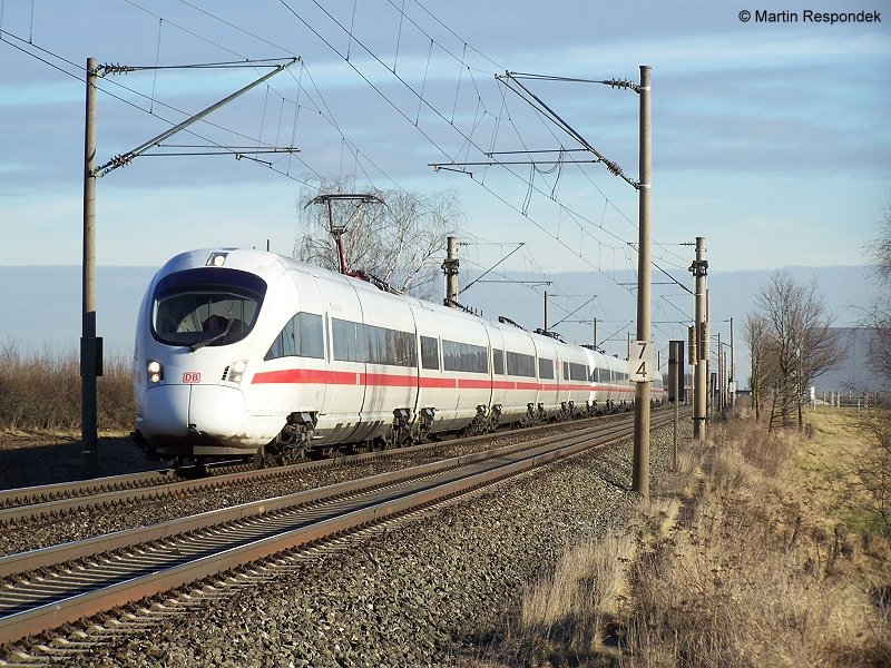 Ein ICE-T schleicht sich am 08.Februar 2008 durch die Landschaft bei Fürth. (zum Bild)