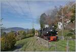 Die SEG G 2x 2/2 105 und die BFD HG 3/4 3 der Blonay Chamby Bahn ist bei Chaulin auf dem Weg nach Chamby. 30. Oktober 2022 (zum Bild)