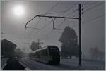 Mein wohl "optisch" kältestes Bild - trotz Gegenlicht wirkt alles recht grau in grau, als der TPF Regionalzug vom Typ SURF Semsales erreicht. 22. Dezember 2021 (zum Bild)