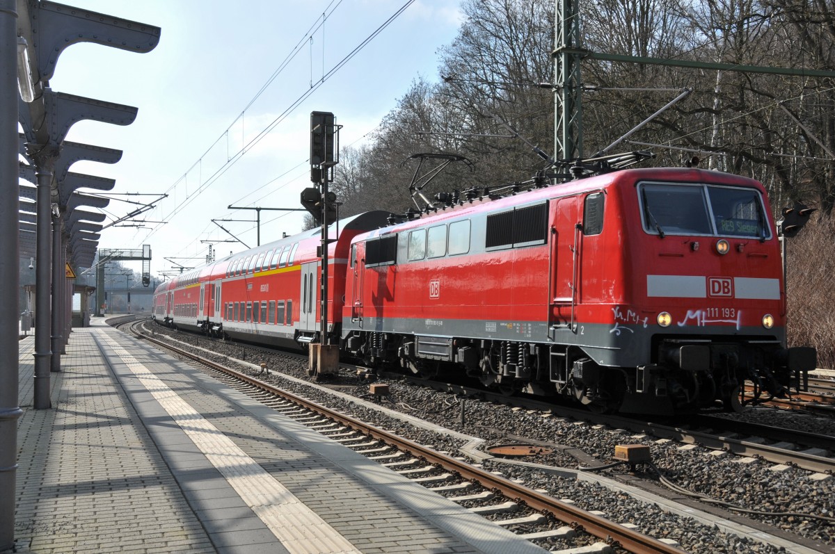 111 193 verlässt soeben mit dem RE9 den Bhf Stolberg in Richtung Köln. Aufnahme vom 12/03/2016. (alla foto)