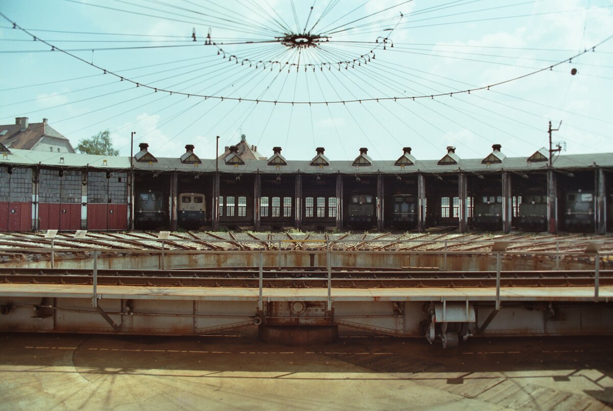 Definitiv Bw Augsburg, Elektro-Ringlokschuppen, erhalten, renoviert, heute Teil des Bahnparks.