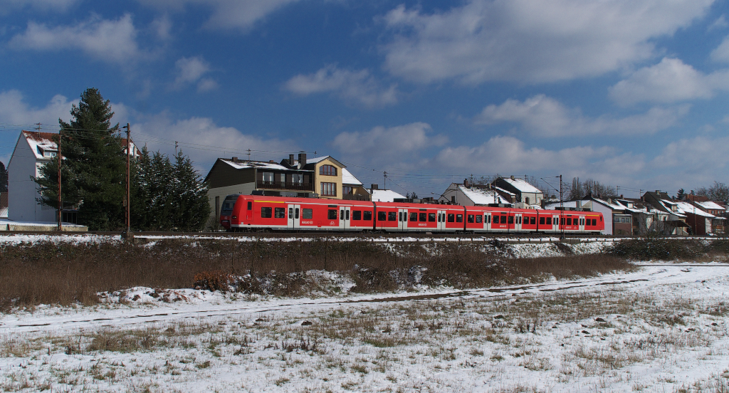 Der Winter ist hartnäckig... 10 cm Neuschnee gab es über Nacht. Als ich Nachmittag in Saarlouis an der Anrufschranke war, hatte die Sonne schon einige Zentimeter weg getaut. Der Spaziergang erfolgte einige hundert Meter weiter in Richtung Kleingartenanlage. Im feinsten Sonnenlicht kam uns der RE nach Trier aus Saarlouis entgegen. Der 425er blieb leider unerkannt. KBS 685 Saarlouis-Roden am 13.03.2013 (zum Bild)