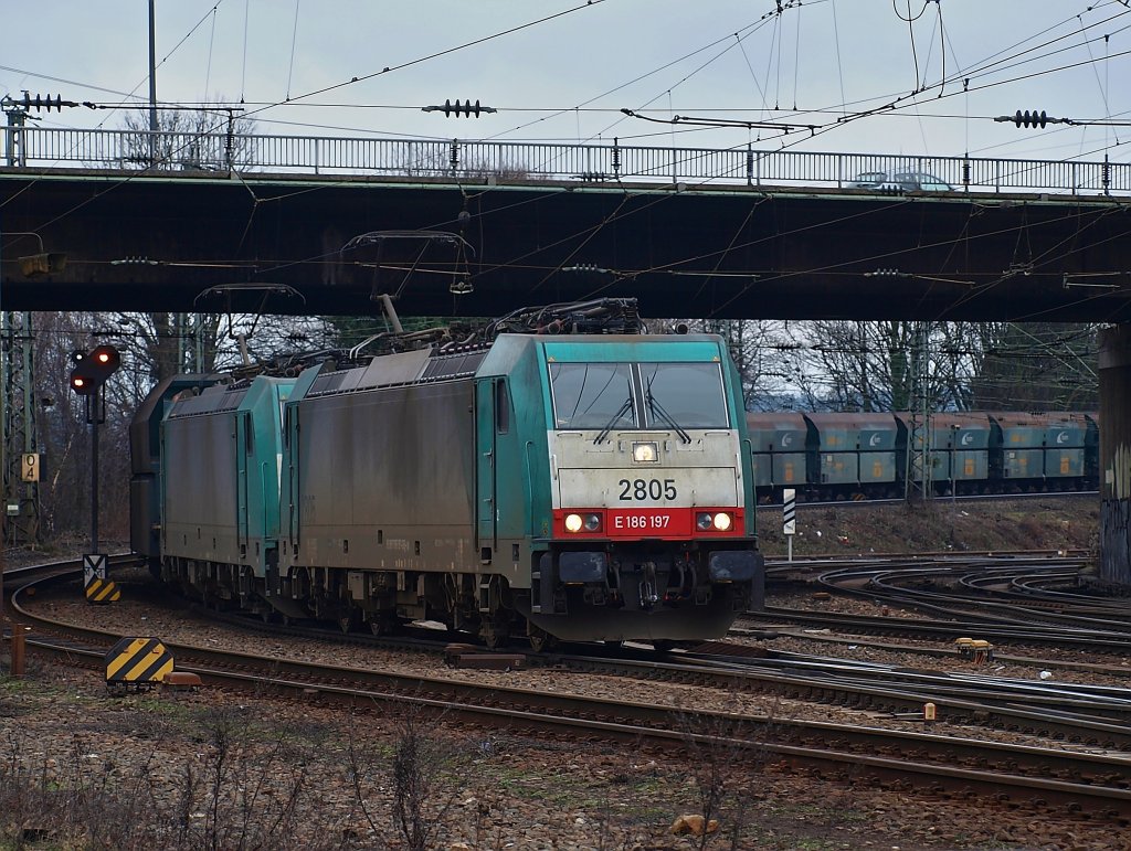 Schön wie die beiden Loks hier Farbe ins Bild bringen. Gefällt mir gut.