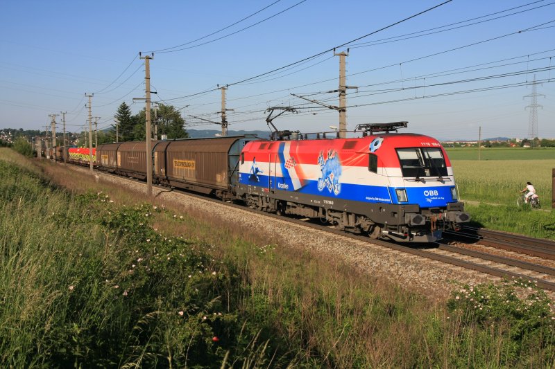 ich würde meine Bilder auch lieber vor einer herrlichen Bergkulisse und mit den alten zierlichen Eisenmasten machen. Leider spielt da der oberösterreichische Zentralraum (Alpenvorland) nicht mit! Der Höhenzug im Hintergrund (ca. 15km entfernt) ist gerade mal 150 m höher als der Fotostandpunkt.