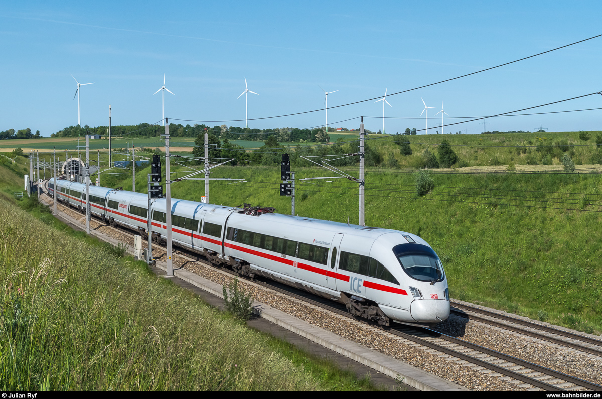 Planverkehr auf der Schnellfahrstrecke der neuen Westbahn am 29. Mai 2017: ICE T 411 013 "Hansestadt Stralsund" bei Pottenbrunn. (zum Bild)