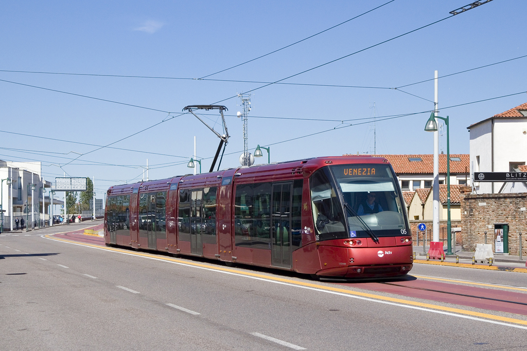 Am 20. April 2017 ist Wagen 05 als Linie T1 unterwegs und wird in Kürze die Endstation Venezia Piazzale Roma erreichen. (alla foto)