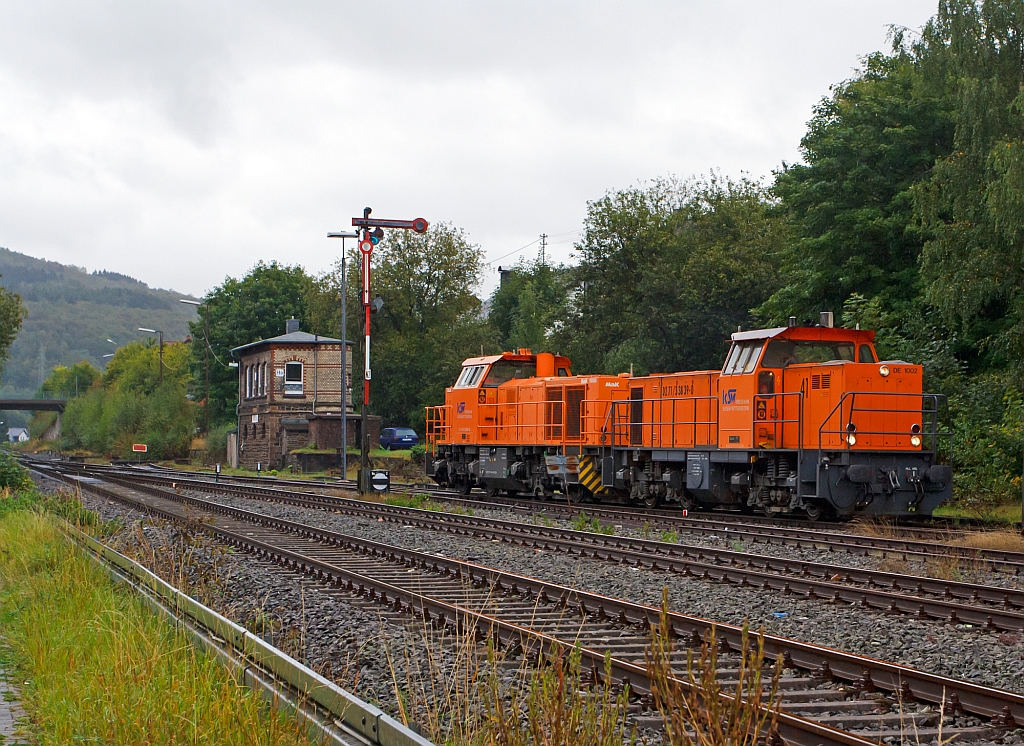 Wunderbares Bild mit die tolle orangen Loks, das Flügelsignal und das Bahnwätershaus, Armin!