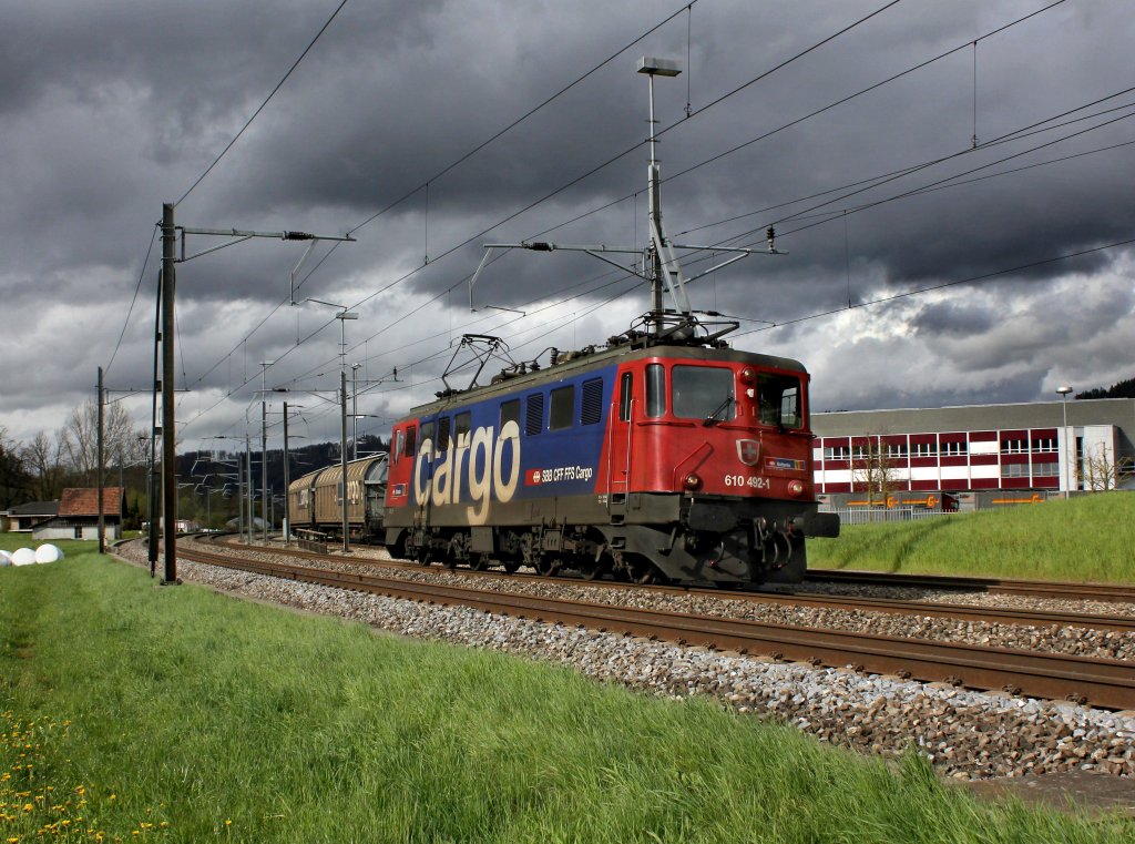 sehr schönes Stimmungsbild mit der ehemaligen "Raststättenlok" und dem SBB Cargo Güterzug. Gefällt mir sehr gut.