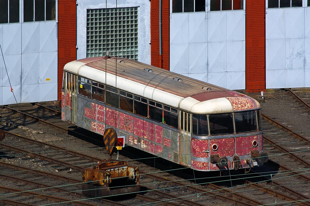 Robel 1000 mm Rottenkraftwagen SKL 53 "Hansemann" (Schwer-Kleinwagen-Nr. 53.0592) der Brohltalbahn (ex. DB 53.0592) mit angehängten Kleinwagenanhänger BEG 142 abgestellt am 02.09.2012 im Bf Bohl BE. Der Klv 53 (Kleinwagen mit Verbrennungsmotor) wie sie auch genannt werden, hier die Bauart 531, wurde 1977 von Robel unter der Fabriknummer 54.13-6-AA257 gebaut. Der Klv 53 ist der meistgebaute Rottenkraftwagen in Deutschland. Techn. Daten: Eigengewicht 8,1 t ; Nutzlast 2 t ; Anhängelast 42 t ; Höchstgeschwindigkeit 40 km/h (bei Normalspur Fahrzeugen 70 km/h); 6 Personen sin zur Mitfahrt zugelassen; zudem ist er für die Steilstrecke Oberzissen-Engelen zugelassen (Steigung von 1 : 20 = 50 Promille). Der Kleinwagenanhänger BEG 142 (ex OEG 1026, ex DEV 142) wurde 1903 gebaut, das Eigengewicht beträgt 4,5 t und max. Ladegewicht 10,0 t. (zum Bild)