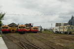 interessanter Blick in das Depot mit der Plasser & Theurer und den Dieseltriebzügen verschiedenster Bauart.