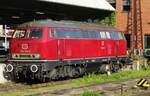 Die 218 139-4 der Vulkan-Eifel-Bahn sonnt sich am 11.10.2023 im Koblenzer Hauptbahnhof (naar de afbeelding)