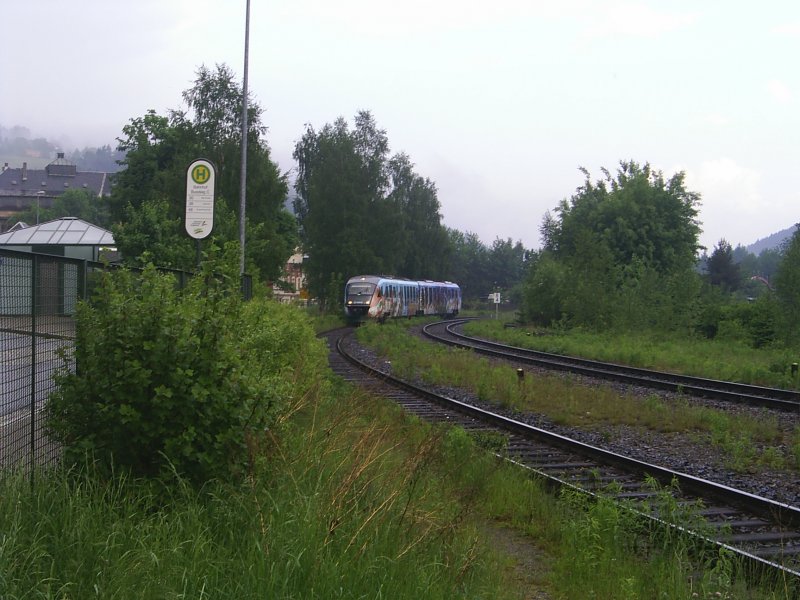 VT06 ("Vogtlandzug") als VBG83128 in Klingenthal, 31.05.08. (Anlässlich 10 Jahre Viamont auf der Strecke Graslitz-Falkenau.) (zum Bild)