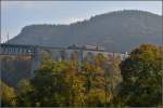 gefällt mir sehr gut wie sich der weiße Zug durch den herbstlichen Wald schlängelt.