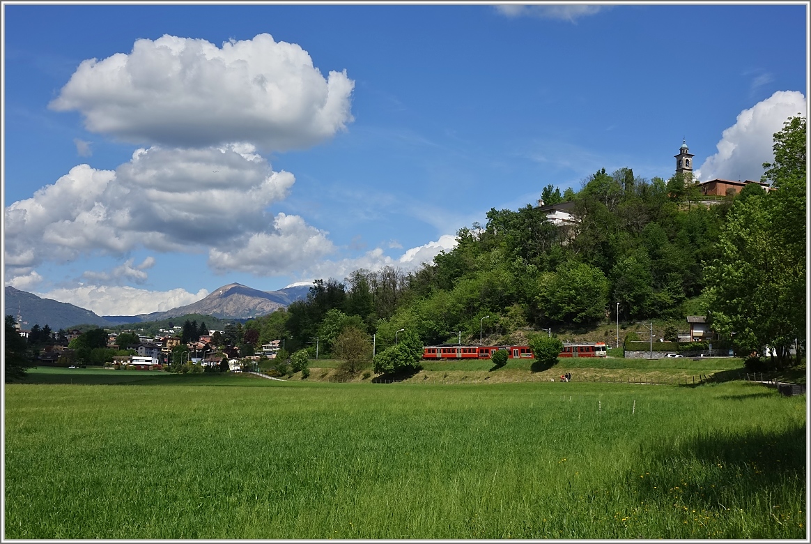 Ein FLP Regionalzug auf der Fahrt von Lugano nach Ponte Tresa kurz nach Agno (30.04.2015) (voir l'image)