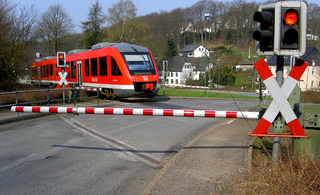 Ein wunderschönes Bild mit die Lint auf die Bahnübergang und die tolle Häuser im Hintergrund, Werner!