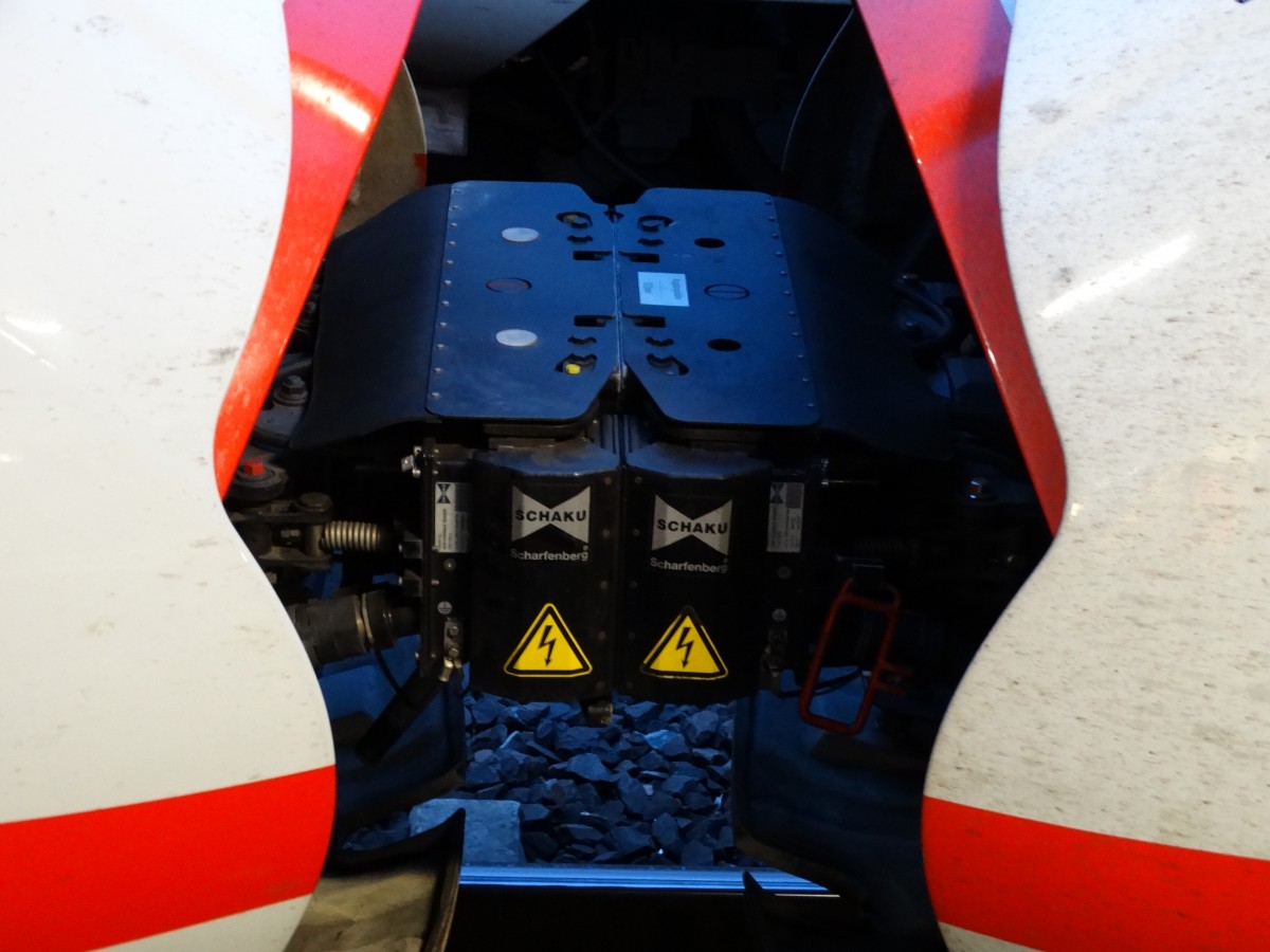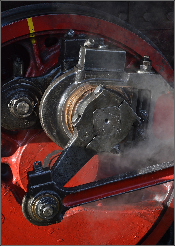 schönes Bild von der Lokomotive auf der Wartungsgrube. Hoffentlich fällt beim Fotografieren niemand in das Loch am rechten Bildrand...