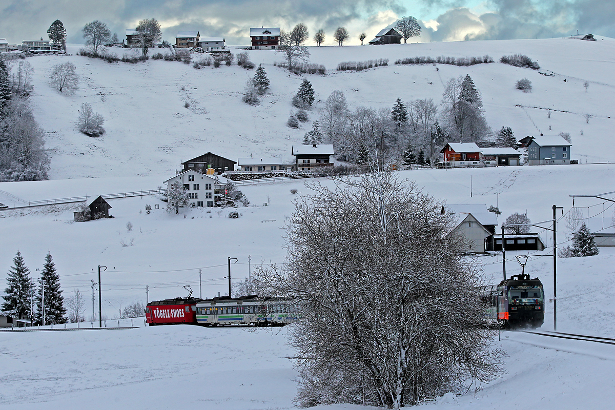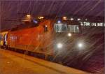 Bei solchen Bildern hat der Fotograf nicht nur darauf zu achten nicht im Bahngelände zu stehen, sondern auch nicht im Schnee-Auswurf-Bereich...