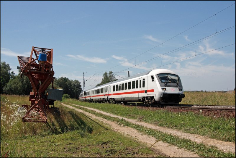 Ein ganz normaler IC in einer ganz nomalen grünen Wiese mit einem ganz nornalen blauen Himmel im Hintergrund...