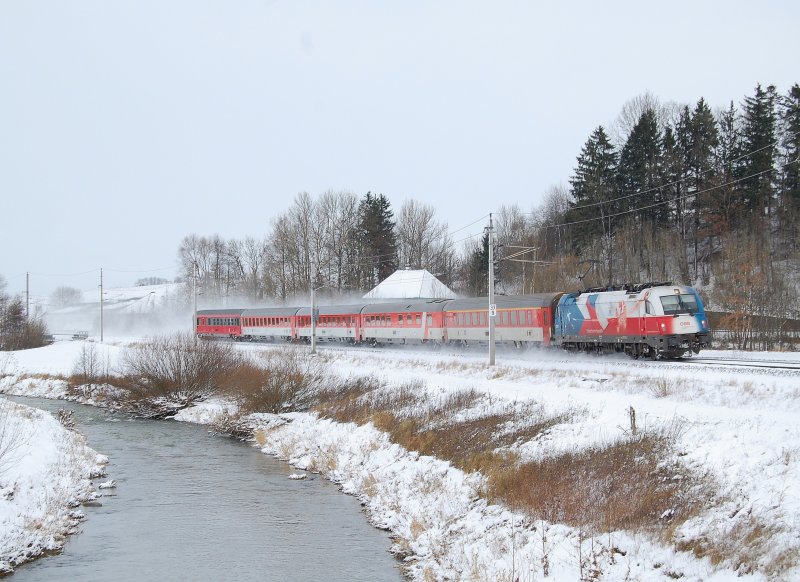Mit dem IC 500 ist die 1116 093 am winterlichen 22.11.2008 kurz vor Micheldorf unterwegs gewesen. (alla foto)
