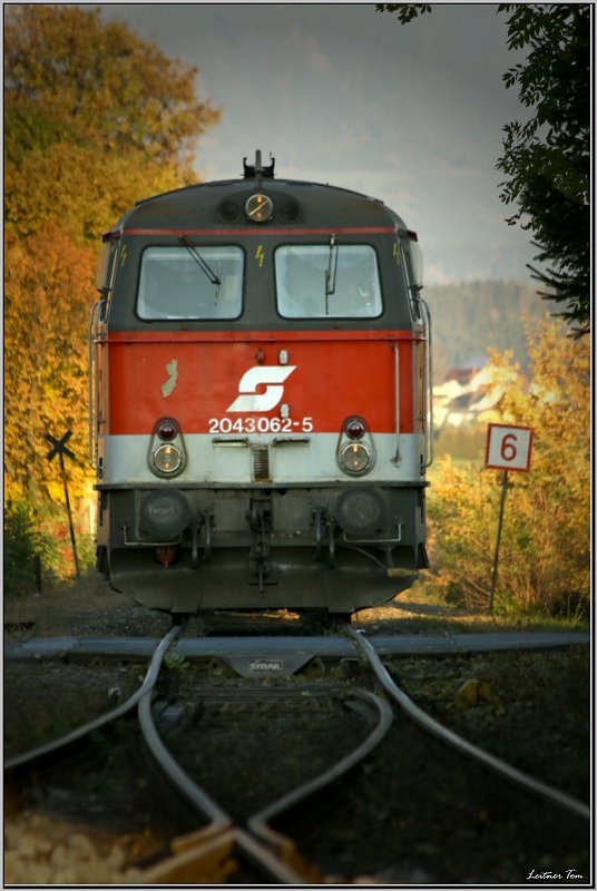 Diesellok 2043 062 fährt mit einem Schotterzug zu Gleisbauarbeiten in Fohnsdorf. Fohnsdorf 18.10.2008 (alla foto)