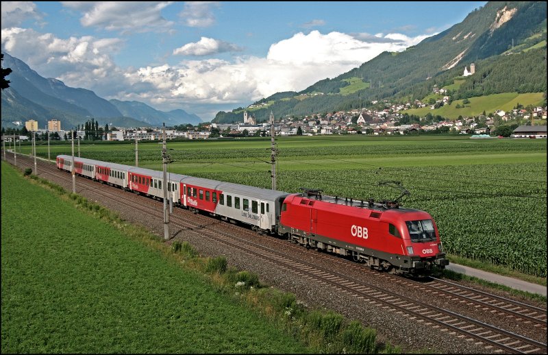 das Bild gefällt mir. Interessant bei diesem EC 113 ist der 2. Wagen (Bauform), der 4. (Lackierung) und die drei letzten Wagen (Kurswagen HZ nach Zagreb?)