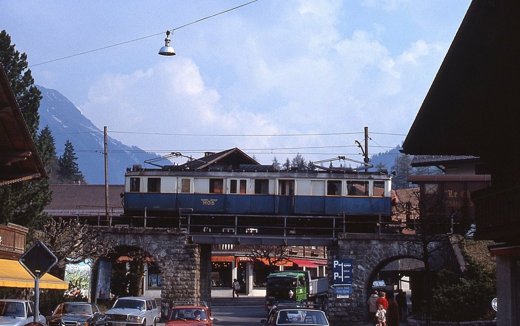 Im Mai 1981 hat BDe 4/4 27 einen Güterzug nach Gstaad gebracht (zum Bild)