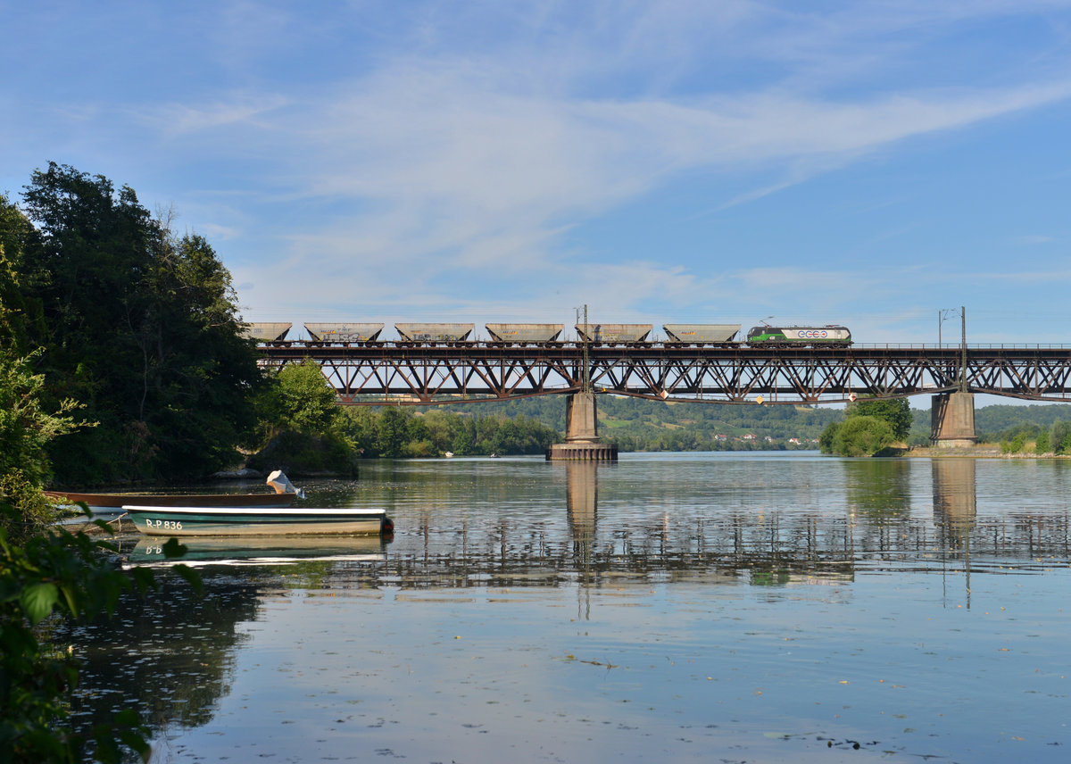 Hallo Stefan, auf der Brücke stehen die Masten nur rechts im Bild und tragen die Fahrleitungen für beide Gleise