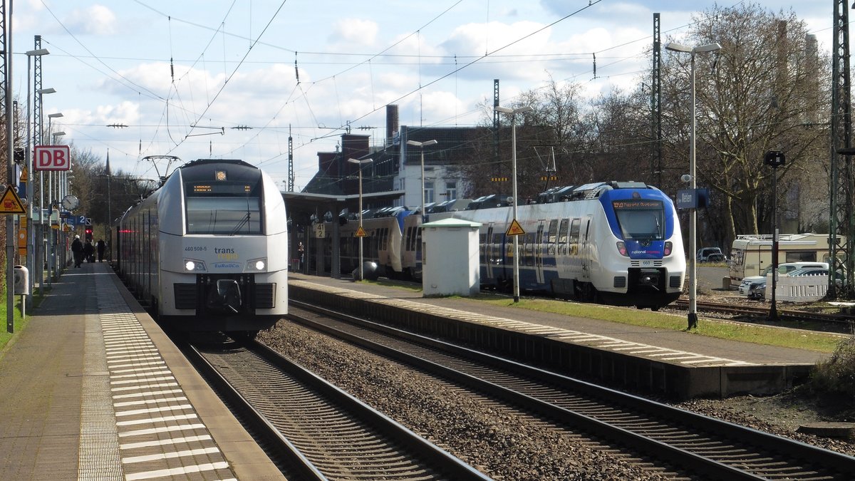 Das DB-Zeichen am Bahnhof wirkt ja fast verloren angesichts der privaten Konkurrenz. Eine interessante Begegnung.