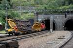 Rangierarbeiten mit einem Spezialtransportwagen für Weichenteile vor dem Gotthardtunnelportal in Göschenen am 19.09.2008 (zum Bild)