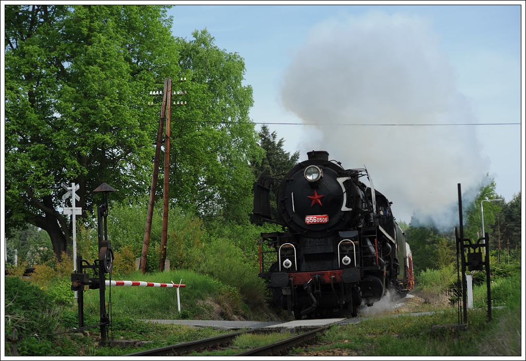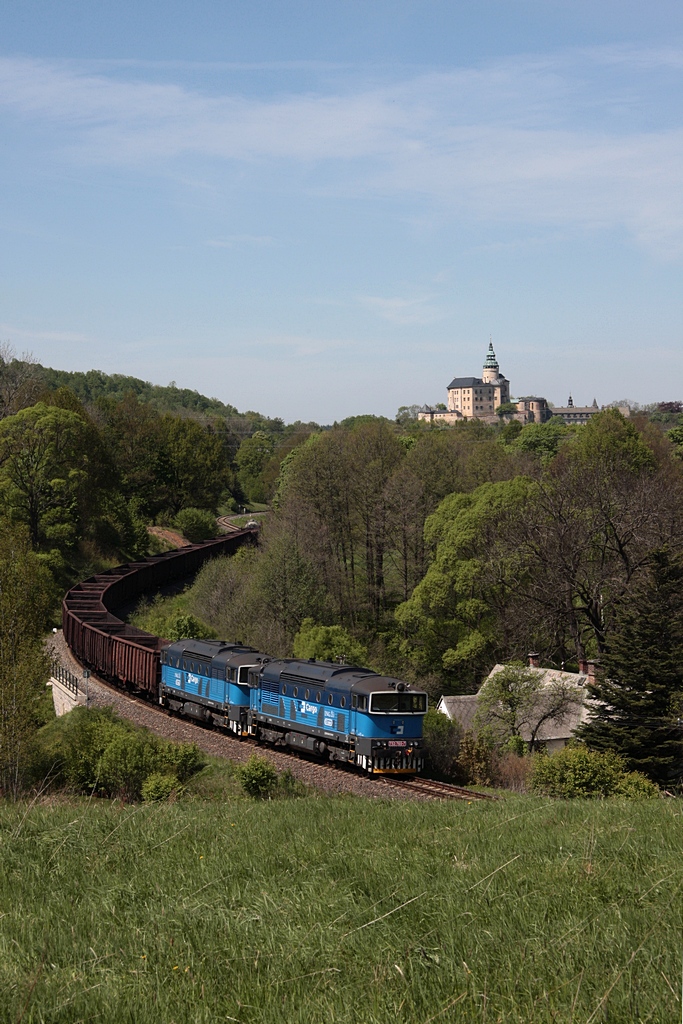 Da entlang der Strecke keine Auskünfte zu Gz-Fahrzeiten zu bekommen waren und uns auch der Fdl in Frýdlant keine Auskunft geben wollte, bekamen wir es eilig als dieser Gz hinter uns in den Bf rollte. Zum Glück hatten wir von Raspenava kommend dieses Motiv entdeckt und auch schon mit 814 gemacht, so wußten wir wenigstens wohin auf die Schnelle. Es ging ja noch einmal gut, zu denken gab mir aber die ablehnende Haltung einiger Personale, dass habe ich in Tschechien so noch nicht erlebt, anscheinend wurden sie in letzter Zeit massiv von Fuzzis genervt.