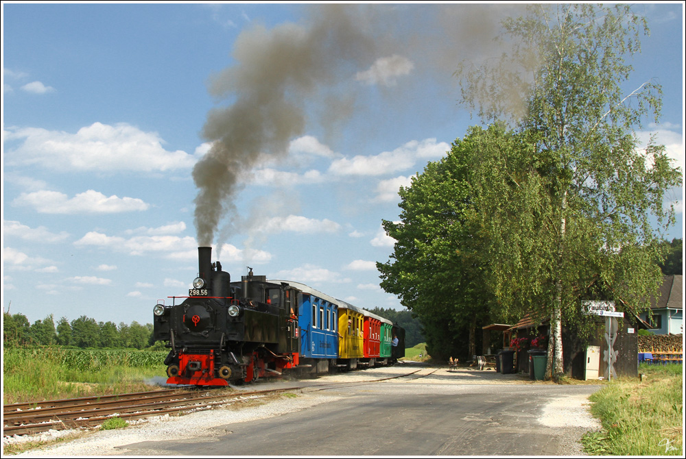 Ein Bild mitten in der schönsten Natur und als Draufgabe ein herrlicher Nebenbahnzug, das gefällt mir.