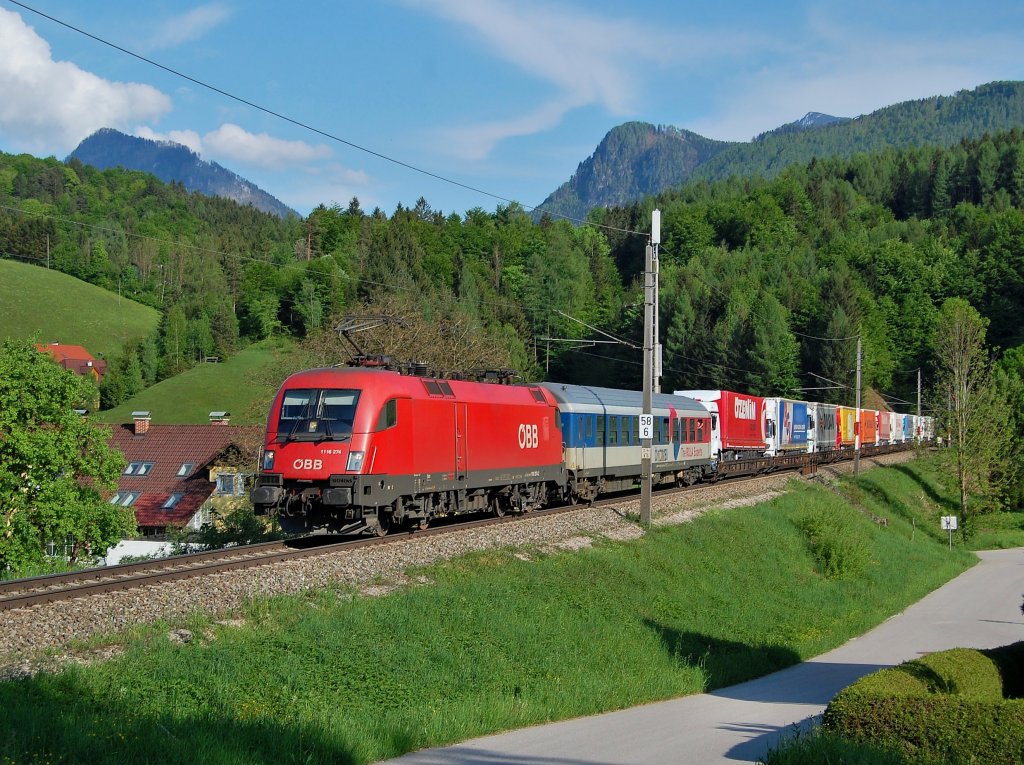 Rola 41404 bespannt mit der 1116 274 ist am 09.05.2013 in der Ortschaft Schön durchgefahren. (alla foto)