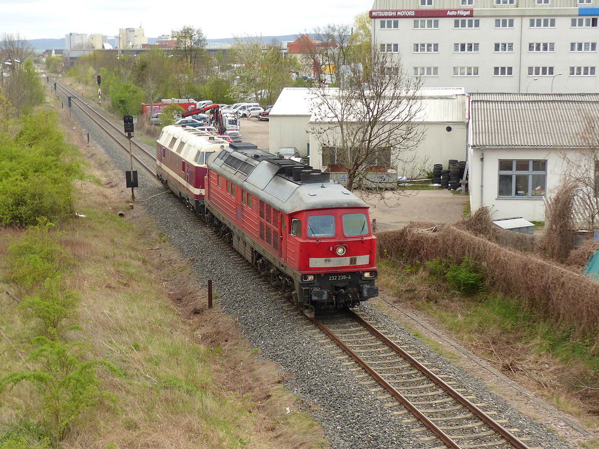 erfahrungsgemäß fährt der Leerzug von Emleben ca. 13.30 bis 15.00 ab Emleben über Gotha nach Großkorbetha, bespannt mit den 218ern von RailsystemsRP. Er kann aber auch um mehrere Stunden abweichen.
