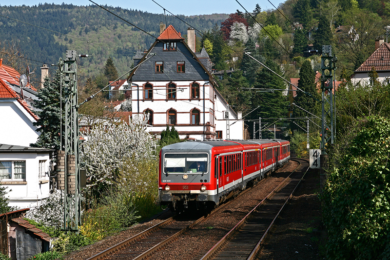 Ein wunderschönes Bild mit die Bäume, Häuser und tolle Triebwagen. Wunderbar!